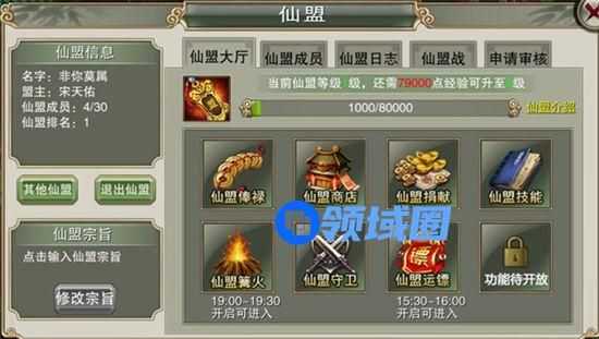 1、可通过仙盟大厅参与仙盟内各种活动,包括领取仙盟俸禄、学习仙盟技能、参与仙盟篝火、仙盟守卫等。