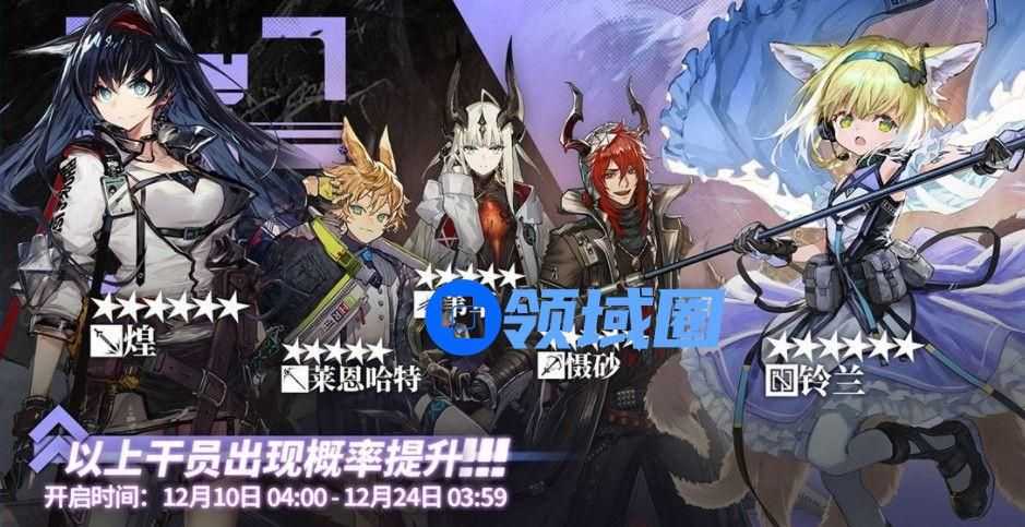 起止时间:12月10日04:00~12月24日03:59寻访说明:常驻标准寻访更新,该寻访中以下干员获得概率提升;