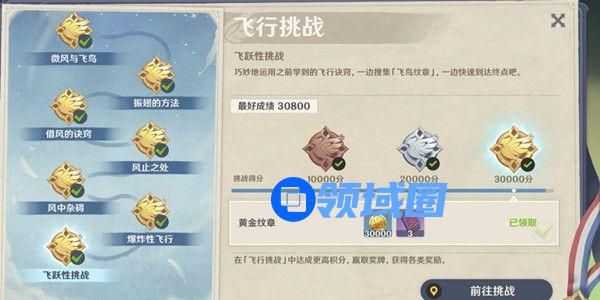 旅行者需要在挑战过程中时刻关注飞行高度和技能充能状态,及时收集微粒,寻找合适的时机使用技能。