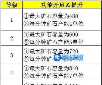 “矿洞”对应等级的功能开启&提升