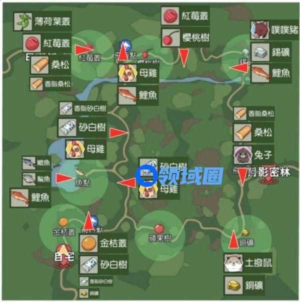 朝晖森林可以从自宅直接前往,下面是整理过后的朝晖森林主要资源分布地图,大家可以保存一下