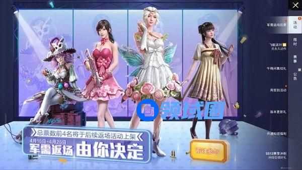 投票入口:进入游戏即可参与投票,参加了投票还能得到奖励,最终票数排名前4名会返场上架。