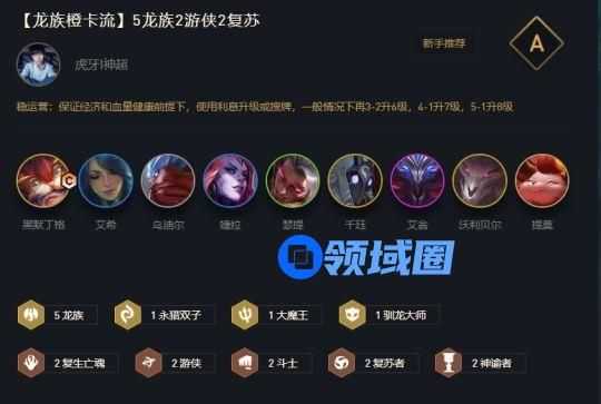 阵容羁绊:5龙族&1永猎双子&1大魔王&1驯龙大师&2复生亡魂&2游侠&2斗士&2复苏者&2神谕者