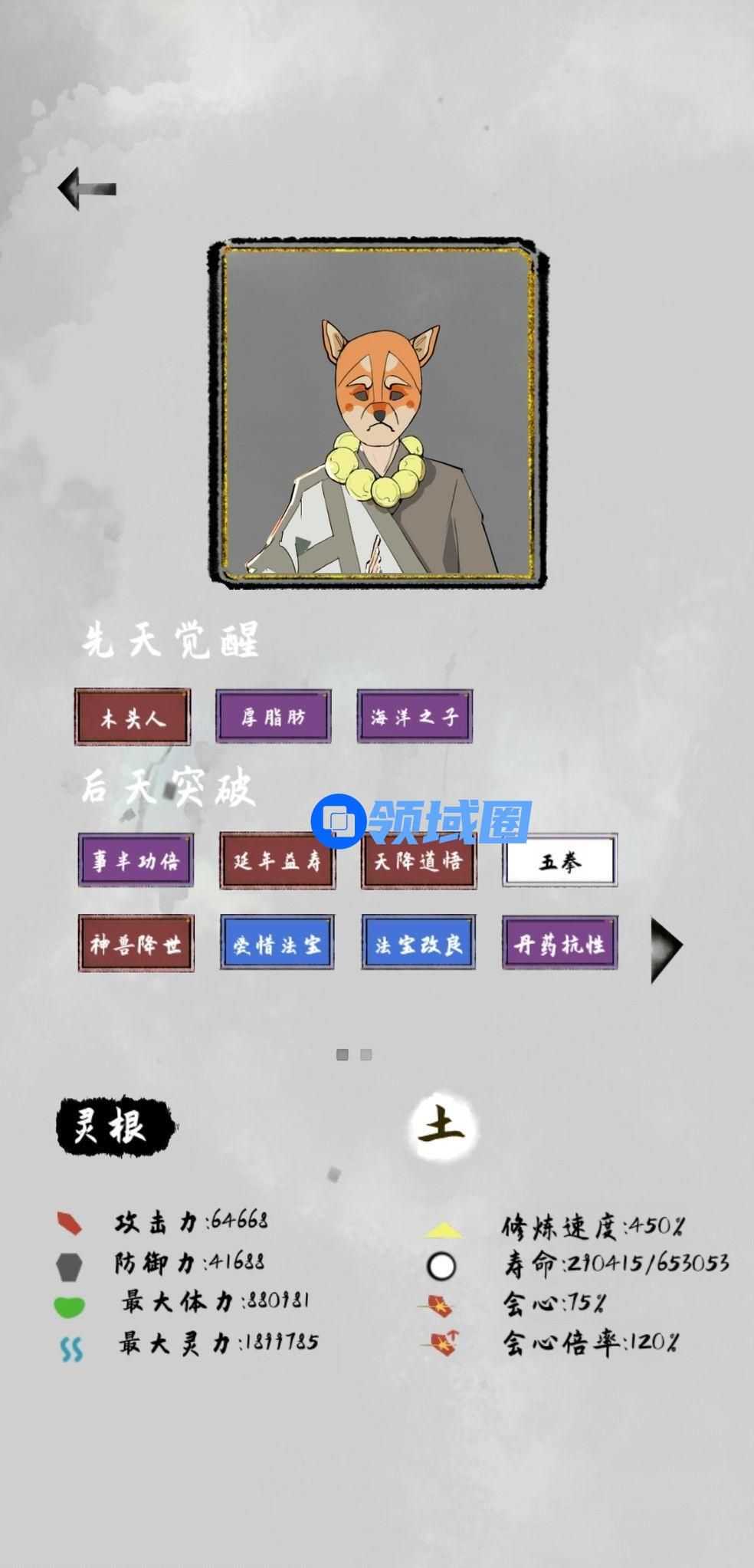 寿命也是个难点,寿命丹药(白色丹药)多吃一点,可以考虑丹体(不限制境界磕丹药,前期运气好的话,数据会非常高)或者长寿(基础生命+50,*数据是按比例增加的)或者龟虽寿(基础寿命+20,防御加20%,这个可以当备用选项)。