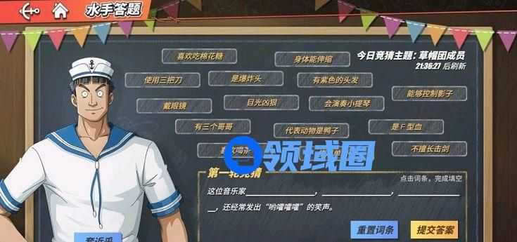 今日竞猜的主题,草帽团成员,那么答案就在这个里面。
