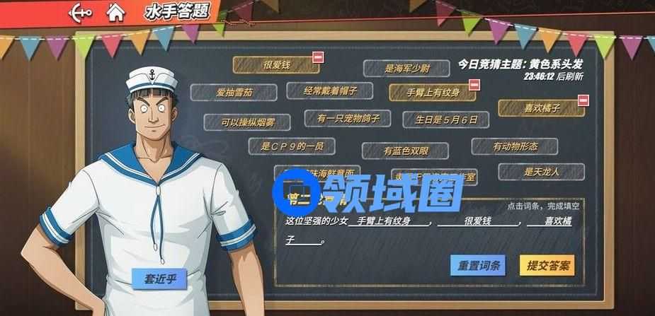 航海王热血航线这位坚强的少女答案是什么?在分析这个问题的时候,想要得出目标人物是谁,你就得通过最重要的外观来进行全面分析。下面就为大家带来航海王热血航线这位坚强的少女的答案分享。