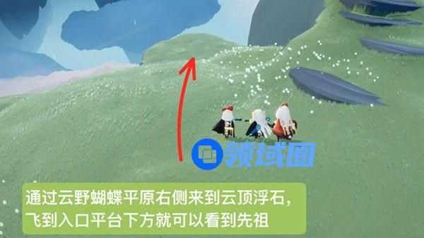 2、走到下方的悬崖上,先祖就出现在草地上。