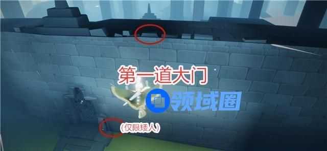 第一道大门有两个隐藏入口:第一处是烛台右边角落,这块草坪是个幻影,走到里面会自动掉到地图外(仅限矮人)。紧接着向前方飞,看到先祖就代表进入了花园,飞出来即可。第二处在入口的左侧墙面。虽然上面是风墙,但有一块石头例外,阿瑶已经把位置标在图中,玩家可以对照一下。
