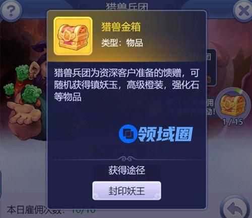 玩家累积获得20次妖王归属即可开启猎兽兵团玩法。