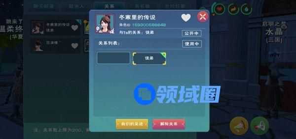 当亲密值达到一定程度即可结缘成为师徒、知音、同伴、三世情缘