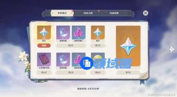 ●「归还奖励」领取回归奖励:在活动期间,可领取原石、脆弱树脂等奖励,仅可领取1次。