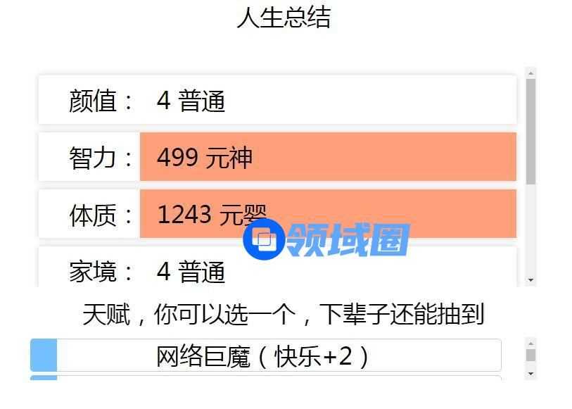 这个模拟器首先可以十连选择3个你喜欢的天赋,接着分配点数到你想要的属性上,最后在每次转生时你还可以选择一个喜欢的天赋进行继承,各位i玩家一起来看看自己不一样的人生吧。