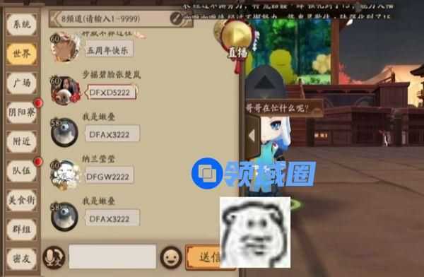 1、五周年邀请码:DFXD5222、DFAX3222、DFGW2222,大家在世界大厅中就可以看到很多玩家发送自己的五周年庆典邀请码,随便输入几个即可。