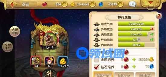 另外在界面右侧可以进行神兵洗练,通过洗练可以提高英雄的属性。