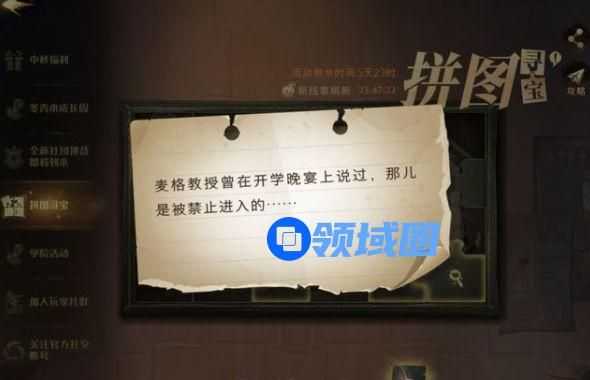今天哈利波特魔法觉醒手游中给出的930拼图线索提示是:麦格教授曾在开学晚宴上说过,那儿是被禁止进入的