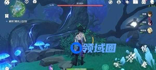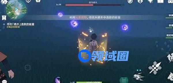 3:我们根据小地图或者元素视野找到能量,破坏第一个栖木中有一个能量飞到旁边的山崖上,我们爬上去;