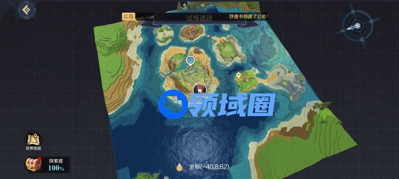 1、前往图示区域,即试炼遗迹海岛左边;