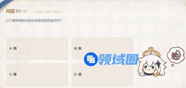 以下哪种植物出现在神里家族的家纹中?这个问题目前大家在遇到之后很难做出正确的判断,当然了你如果能够仔细的观察,那么也能从中发现一些线索。下面就为大家带来原神神里的家纹正确答案介绍。
