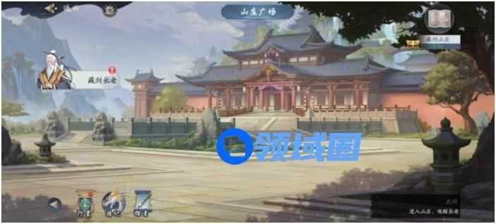 1、与藏剑弟子对话开启,进入山庄广场找藏剑长老对话开启庄主阁,山庄正殿等场景