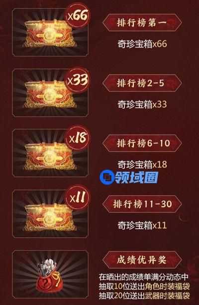 在成绩单满分的动态中将抽取20为送出武器时装福袋一份!抽取10位送出角色时装福袋一份!