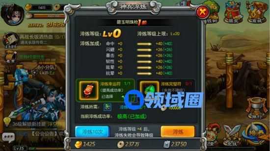 玩家达到31级时就可开启淬炼(淬炼在神兵系统内)