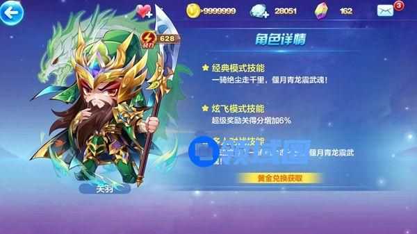 关羽是天天酷跑新一期黄金奖池的兑换角色,与关羽同时上线的还有专属的全新宝物-镇军铠、关家印、军神冠。