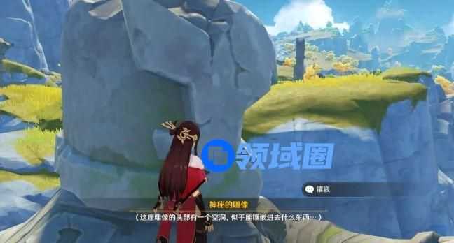 4、两颗珠子都找齐之后就可以把珠子放到遗迹门口的两座雕像头部的缺口里面了。