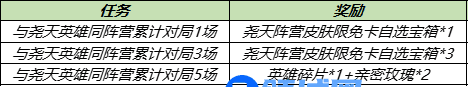 与尧天阵营英雄同阵营参与对局,轻松领取好礼!(尧天阵营英雄:公孙离、杨玉环、裴擒虎、明世隐、弈星)