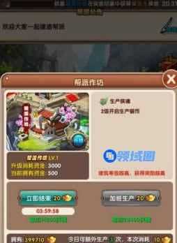 帮派作坊:在这里玩家可以生产侠魂或者银币。建筑等级越高,可选择生产的种类也越多,生产获得的资源数量也更多。未来将会开放更多产出类型。