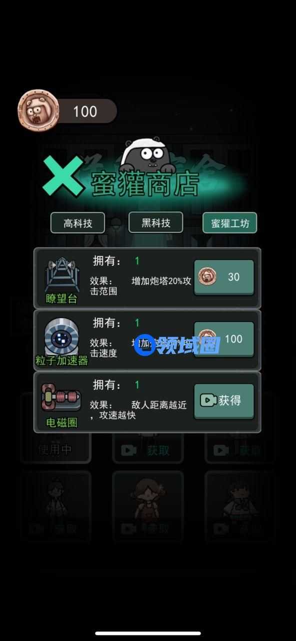 蜜獾工坊内最值得投资的是粒子加速器,不过工坊内物品都偏贵,还需要在炮台起来一片后建造才有收益,所以优先度非常低,很后期才会用到。