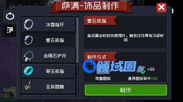 饰品制作,需要用到相应饰品的完整图纸,或99个通用图纸碎片。