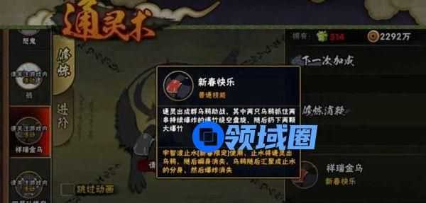 所以这个通灵兽是有新春止水专属的特殊效果的,其他忍者使用的效果和新春止水使用的效果是不一样的,这一点值得玩家注意。