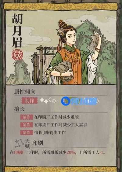 胡月眉主要是对应印刷厂的工作的,天赋强度不是特别高,单纯追求强度的玩家没有必要抽。