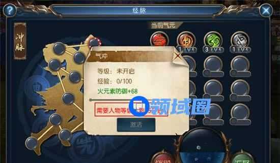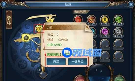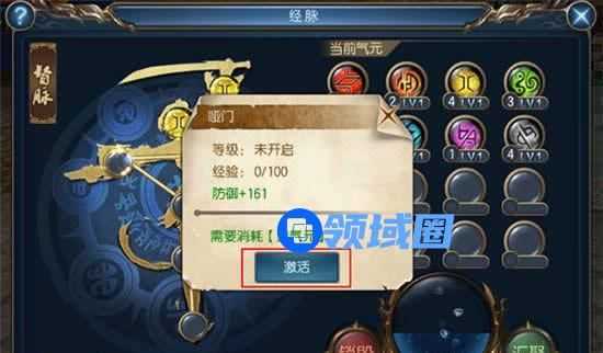 小技巧:我在游戏的时候一般都把自己等级范围内的经脉全激活,再逐步把之前的每个穴位升级,避免因为先升级后面激活气元不够的情况。