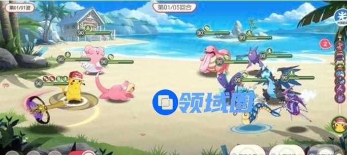 这一关即要保护呆呆兽又要击败对方。后排上阵幸福蛋(回复)、小智版皮卡丘(输出)、剑盾怪(挡伤),这里需要注意的是先攻击自带易伤的暴鲤龙(如图所示),几乎不需要大招就可以解决,其次皮神大招第一次给超坏星,直接秒杀,然后再优先打死后排的喷火龙限制输出,即可顺利过关!!