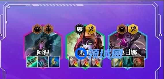 愁云使者-薇古丝(3费卡)、堕落天使-莫甘娜(3费卡)、九尾妖狐-阿狸(4费卡)、仙灵女巫-璐璐(2费卡)、炼金男爵-烈娜塔(4费卡)、发条魔灵-奥莉安娜(4费卡)、荆棘之兴-婕拉(2费卡)、涤魂圣枪-赛娜(3费卡)