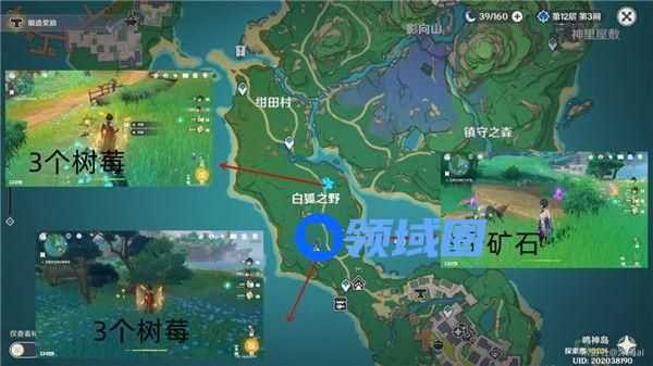 三个矿石以及6个水果最方便的位置已经在下图列出!(全程仅需1分钟,“也许是”最便捷的素材获取位)