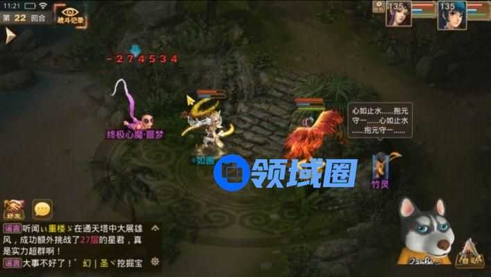 ②魔婴:建议障碍住对面,然后利用法宝技能亲密无间和宠物技能进行防御,如神龙罩、乾坤罩等等。最开始先集中火力打对面一个怪,把魔婴打出来,然后硬拼击杀它。