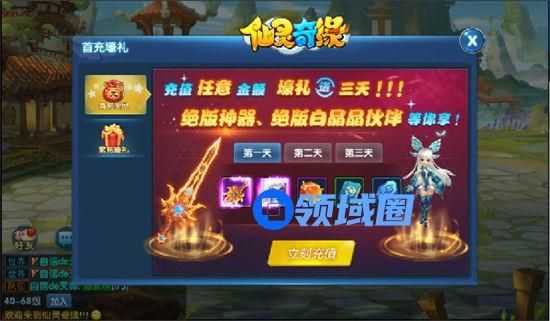 《仙灵奇缘》只要充值任意金额就可以得到绝版神器加上犀利法师,美丽女神伙伴白晶晶·善一名。