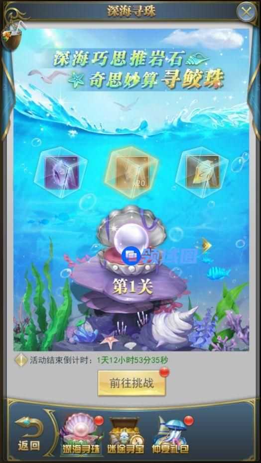 活动期间开启深海寻珠玩法,该玩法总共三个关卡,关卡逐级解锁。