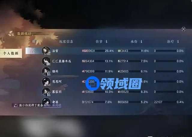5. 在切换到队友的伤害统计数据后,可以看到每个队友的伤害统计数据,包括输出和治疗量等。