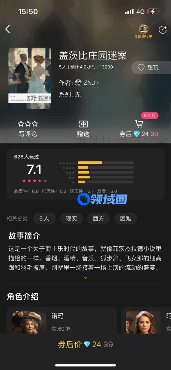百变大侦探今天上新了一个新的5人剧本哦,名字叫做盖茨比庄园谜案,这个剧本还是很有意思的,沉浸其中一起来参与解谜互动,超多你想要了解的内容都是很不错的体验,尽情来和其他的真实玩家一起互动参与解谜体验吧。