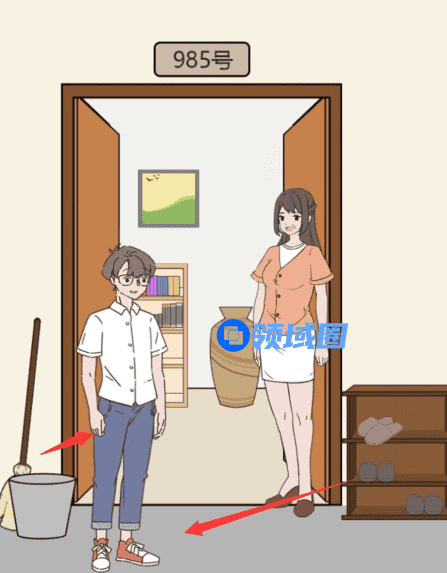 点击清洁工具和拖鞋,给自己用,然后就可以过关啦!