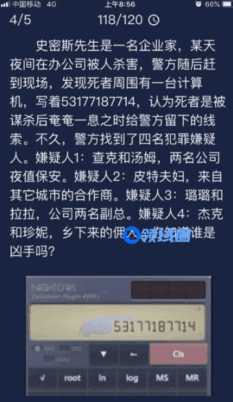 计算机上的数字倒过来看可以得出-个英文单词Hillillies,, 意思是乡巴佬,所以凶手是嫌疑犯D,从乡下来的杰克和珍妮。