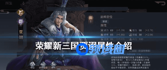 荣耀新三国手游贾诩怎么样?贾诩在荣耀新三国手游中是一位著名的谋士,也被成为三国第一“毒士”,很多小伙伴对贾诩的属性技能还不是很清楚,下面小编就为大家带来荣耀新三国贾诩属性技能介绍,一起来看看吧!,