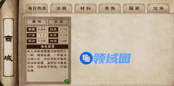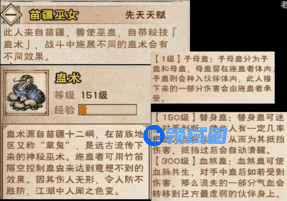 此人来自苗疆,善使巫蛊,自带秘技蛊术,战斗中施展不同的蛊术会有不同效果。而且蛊术要占一个秘技格子。