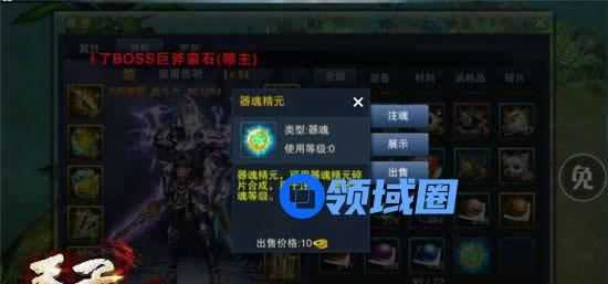 通过将不再需要的装备熔炼,玩家角色就有机会获得一阶魂器,将对应的魂器注入到对应部位的装备上,就会按照一定的百分比来提升对应属性值。换句话 说,随着玩家角色的不断成长,各属性值慢慢提升的同时,魂器的作用才将发挥真正的威力。全身十件装备全部注入魂器之后,玩家角色就会激活一阶神装效果,霸 气外露的造型,并在魂器的基础上,再增加5%的攻击和10%的防御属性。魂器五级时又将激活第二套神装外观,比起第一套的外形还要出彩很多,强悍的实力足 以不战屈人之兵。