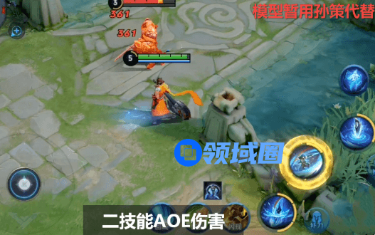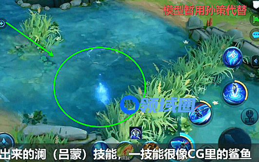 首先说的是,目前官方的模型还没做出来,所以暂时用孙策替代,这个技能的效果有两段。一段是钻入到地底下,另一段是上浮回来,而第二段是一个输出技能,目测在钻入地底之后应该会增加移速,可能图片不是非常的清楚,因为现在没有模型只是一个简单的技能机制,大家理解一下。