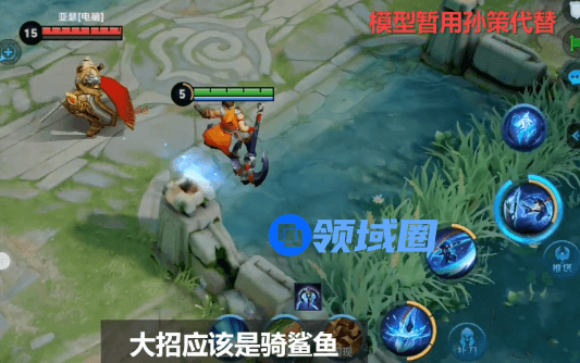 大招目前根据网友的爆料资讯是非常少的,在游戏中现有的模型,就是孙策原地跳一下。如果推测的话可能会骑到鲨鱼身上,或者变成CG里面的鲨鱼水炮,需要说明的是可以看得出来这是个读条技能并且时间不短。