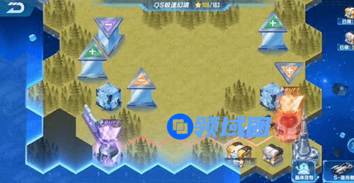 第一步:开启第三张后,先点击地图中的紫色控制按钮,将三棱柱降下去,然后进入关卡内部。